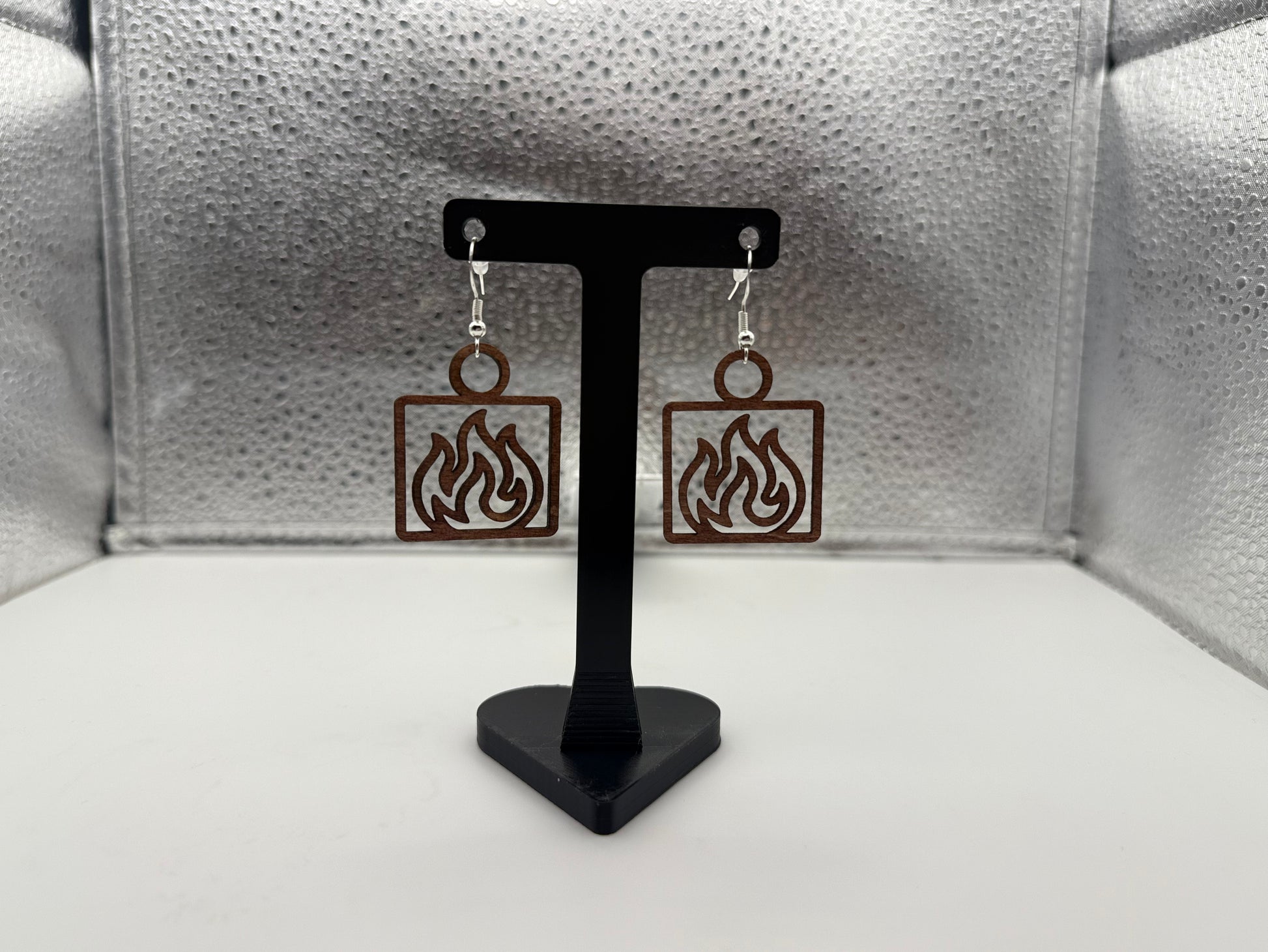 These Fire element earrings are expertly crafted with sterling silver and natural wood, representing the powerful element of fire. With their sleek design, these earrings are perfect for showcasing your bold and passionate energy. Channel your inner fire with these exquisite earrings.
